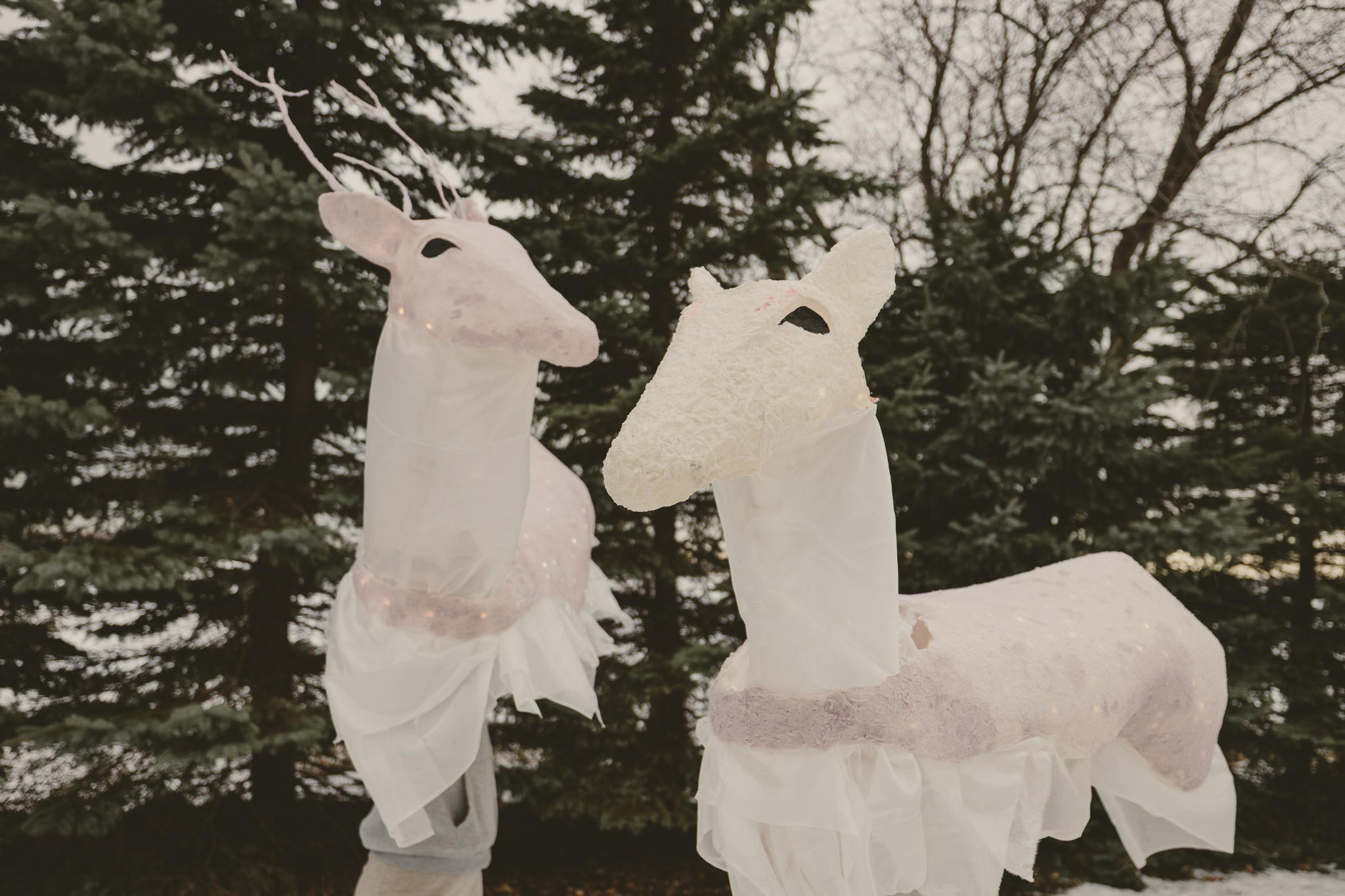 Laissez-vous transporter dans la féérie hivernale et la magie du temps des fêtes avec nos grands rennes de soie et de lumière.