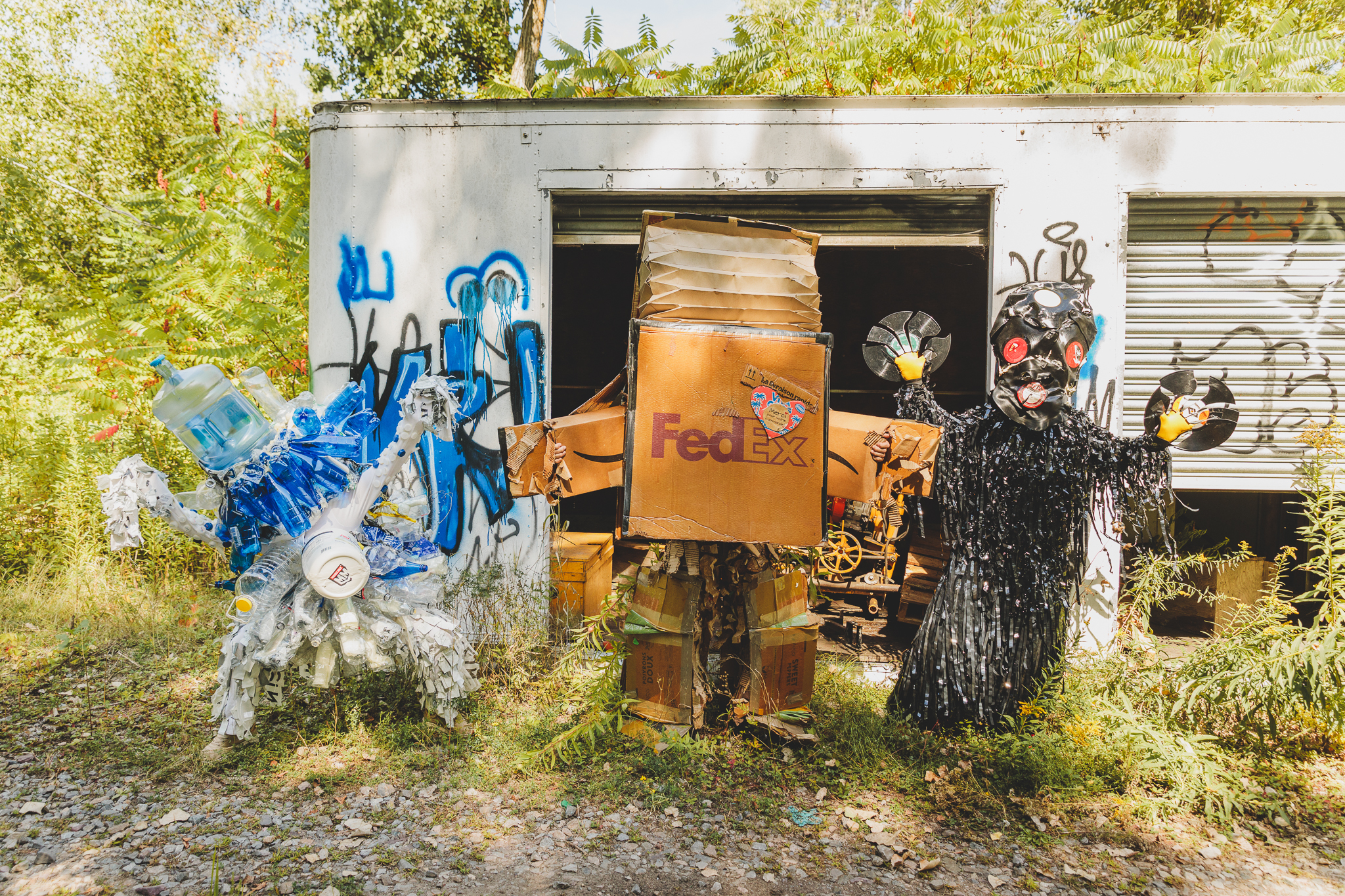 Livraison Gratuite met en scène 3 personnages entièrement fabriqués de rebuts commerciaux. Déambulation, animation et court spectacle seront au rendez-vous!